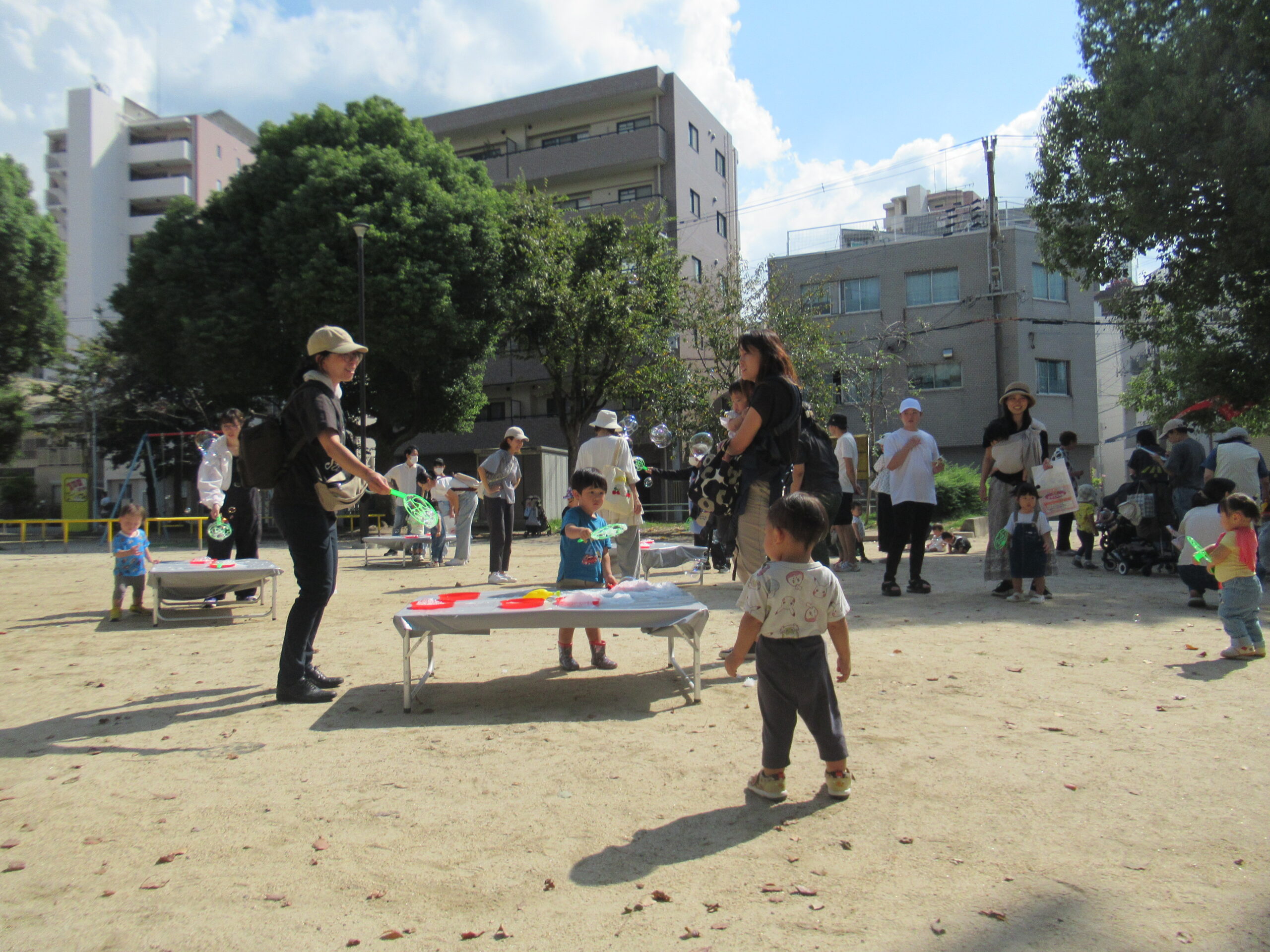 西区内の公園で開催する「シャボン玉で遊ぼう!」や各子育てサークルでのミニ講座や身体測定を実施する「出前講座」、各地域でのイベント出展を通じて普段プラザをご利用しにくい子育て世帯のみなさんとつながり、子育てを応援します。