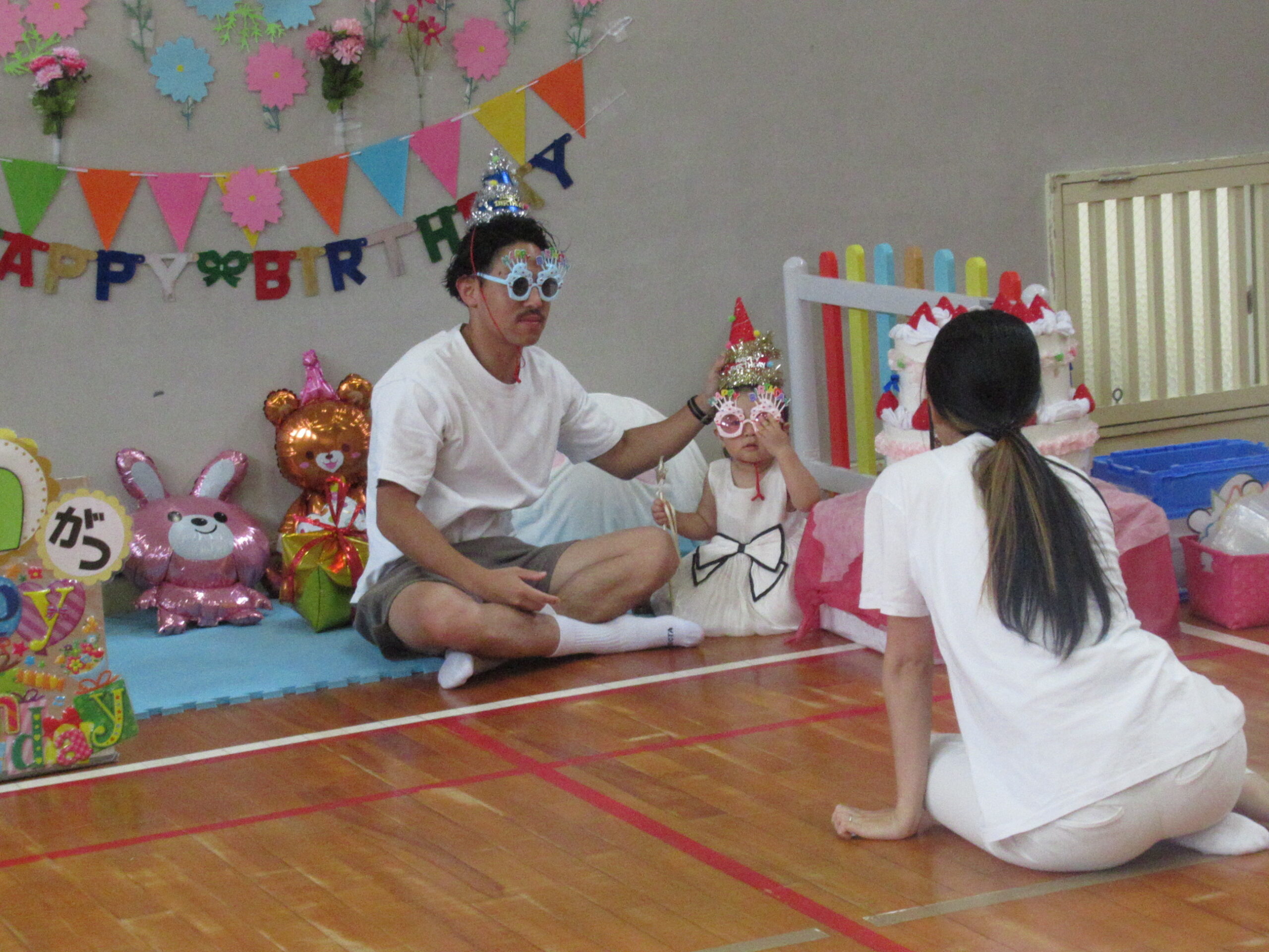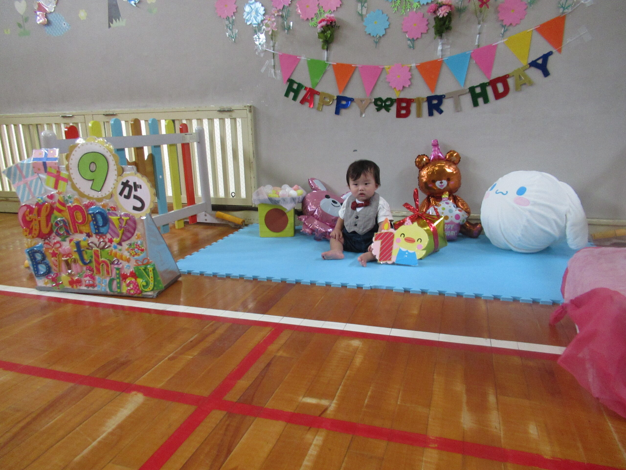 お誕生月のお友だちをお祝いする写真スペースを設置しています。