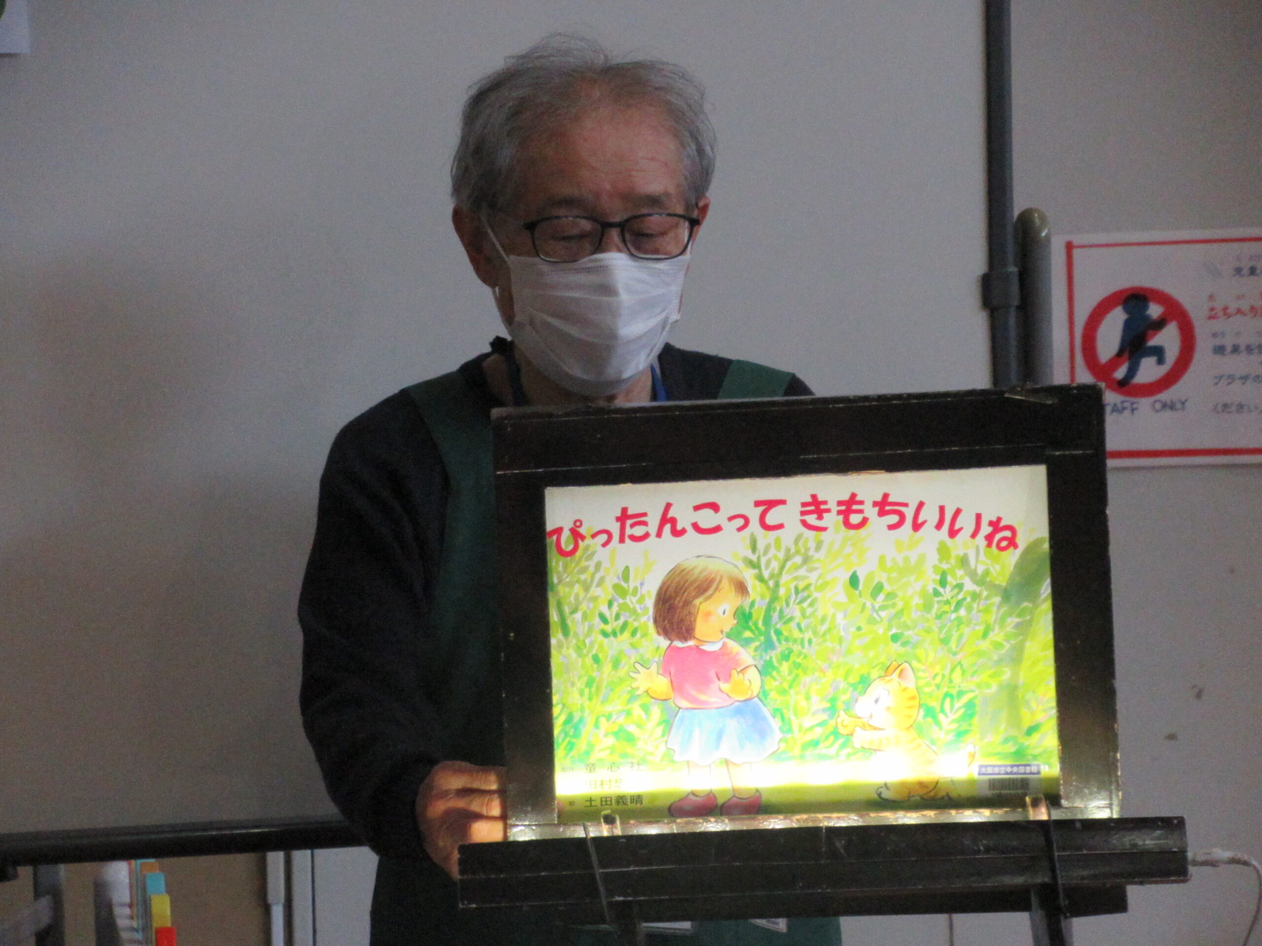 絵本の読み語りや紙芝居、手遊びなどをボランティアグループたんぽぽさんと一緒に楽しみましょう♪