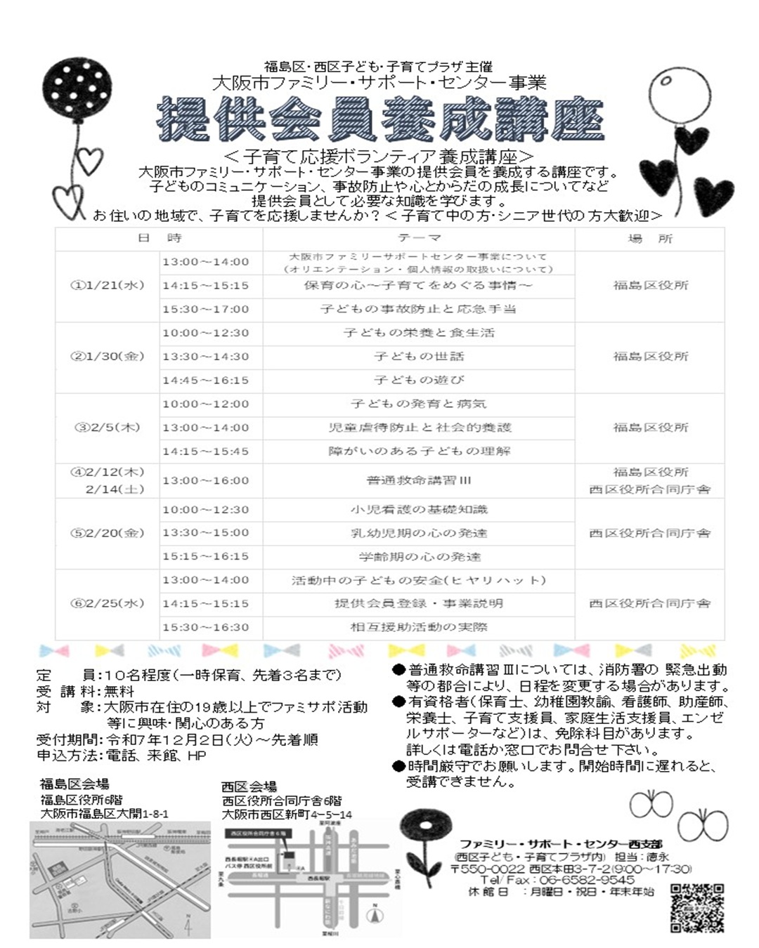 講座 大阪市ファミリー・サポート・センター事業 【提供会員養成講座】